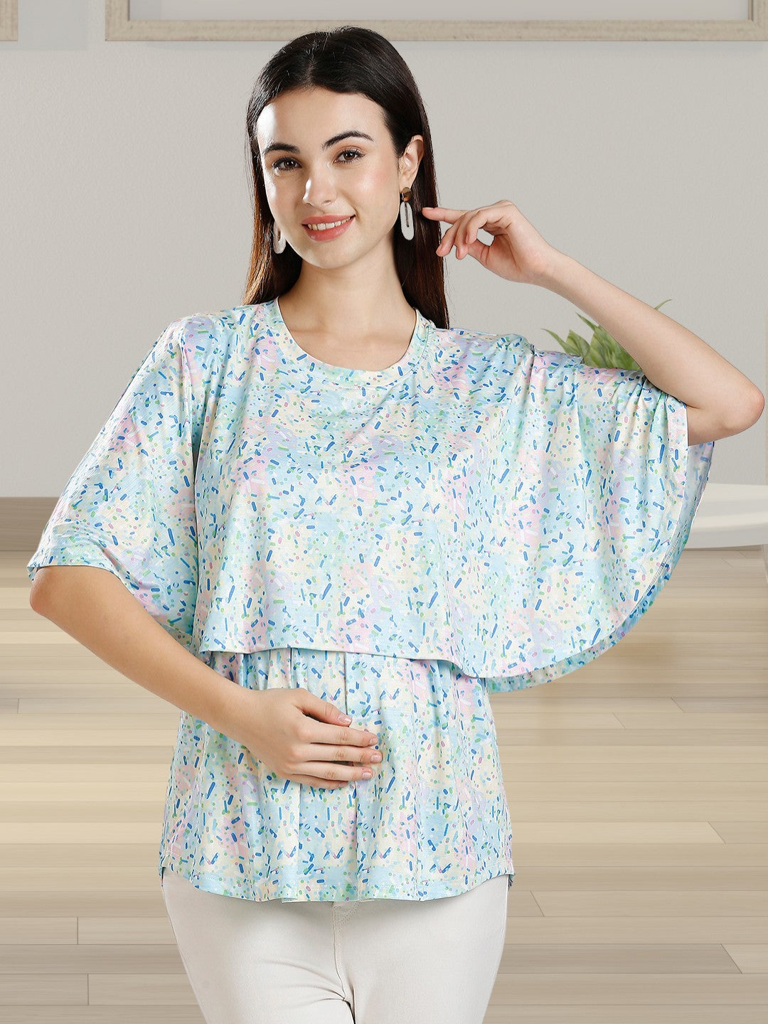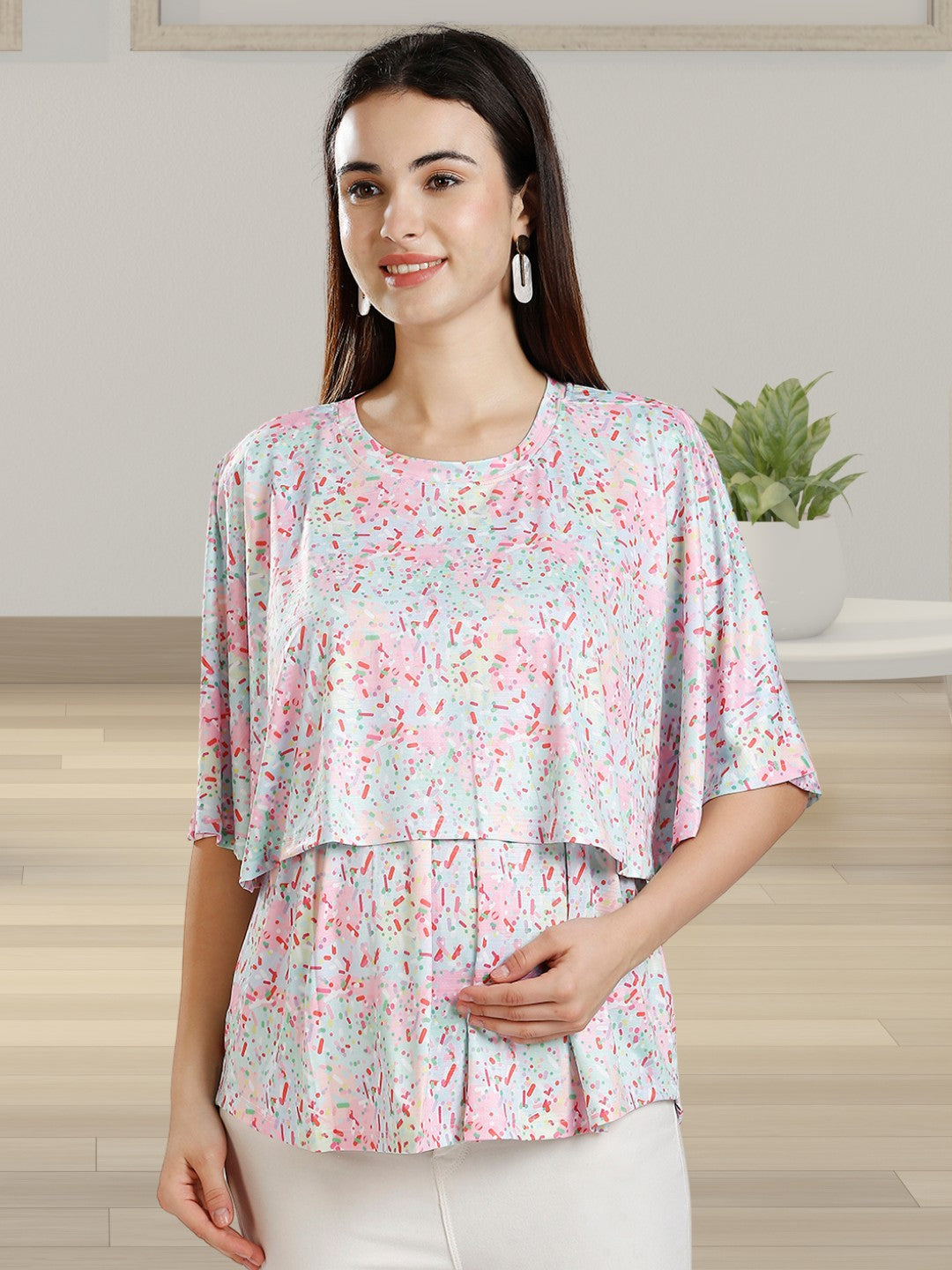 FASHIONABLE ZIPLESS FEEDING TOP WITH ATTACHED CAPE