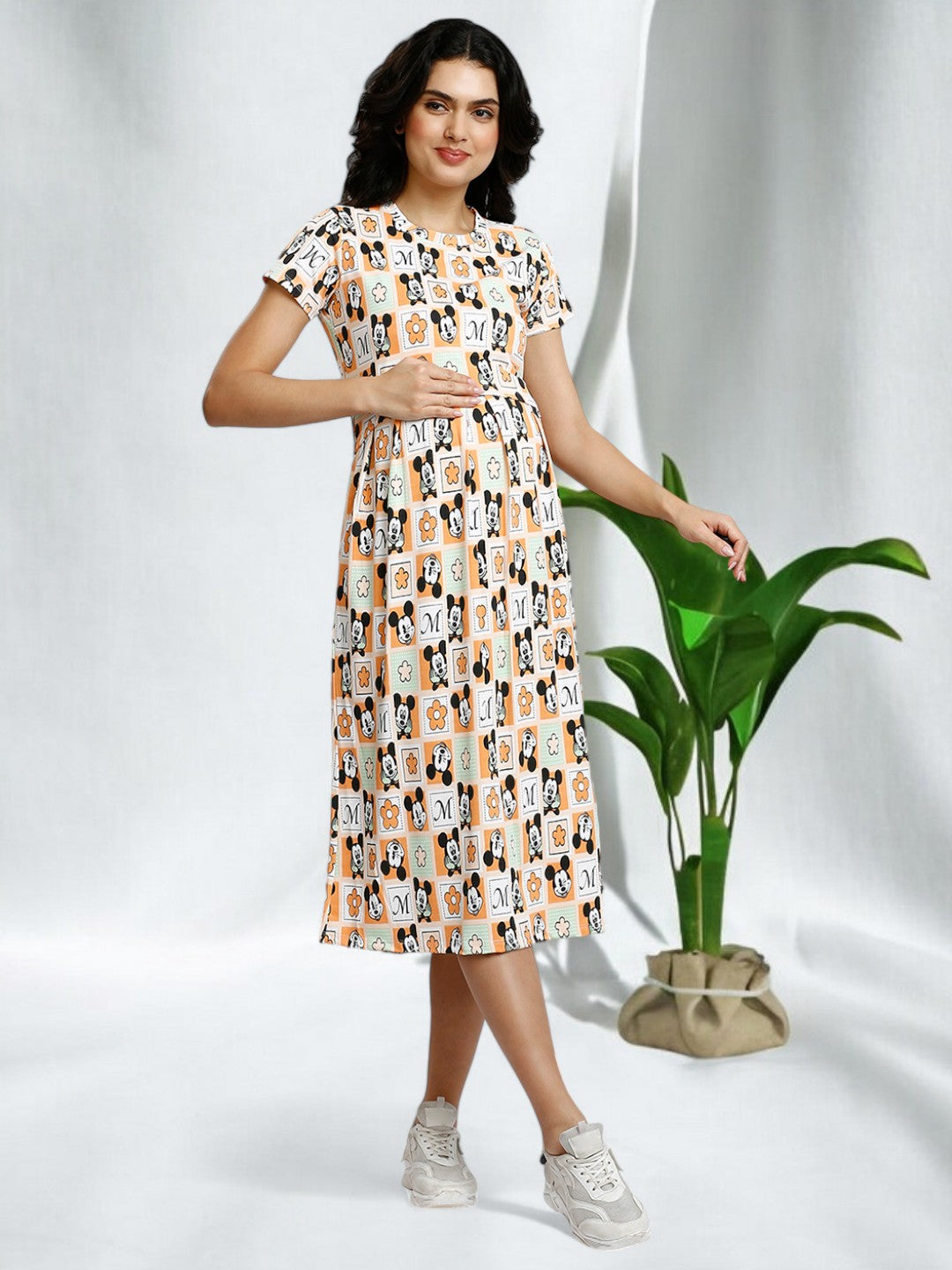 STYLISH ZIPLESS MATERNITY DRESS WI..